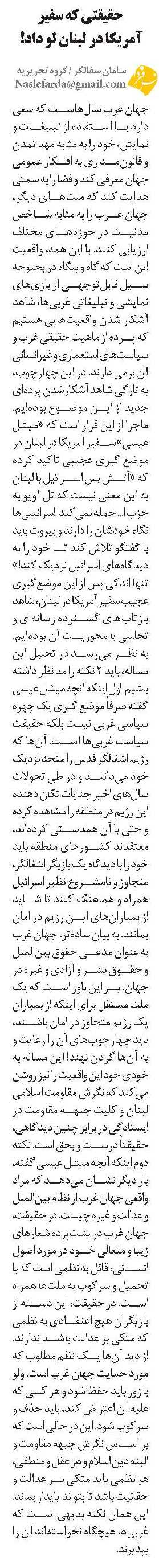 • حقیقتی که سفیر آمریکا در لبنان لو داد!