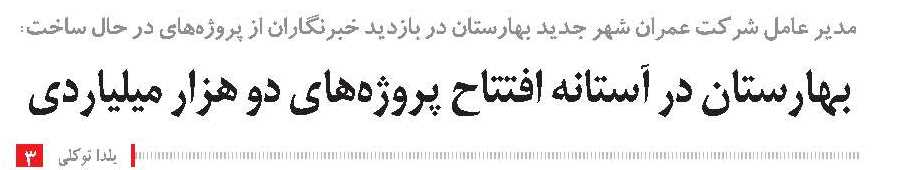 • بهارستان در آستانه افتتاح پروژه‌های دو هزار میلیاردی