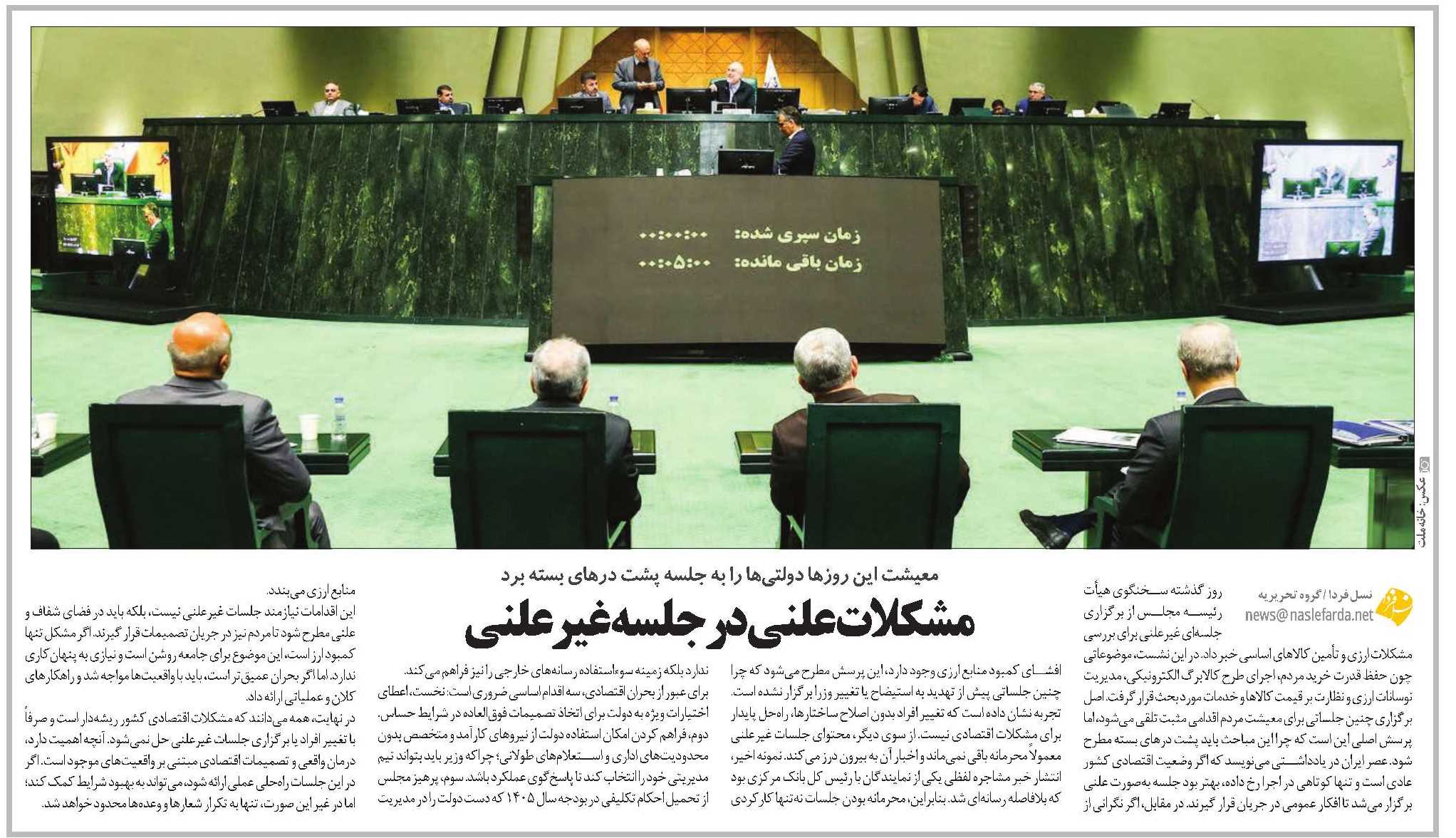 • مشکلات علنی در جلسه غیرعلنی
