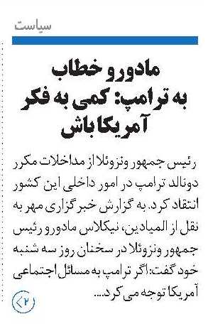 • مادورو خطاب به ترامپ: کمی به فکر آمریکا باش