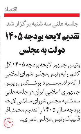 • تقدیم لایحه بودجه ۱۴۰۵ دولت به مجلس