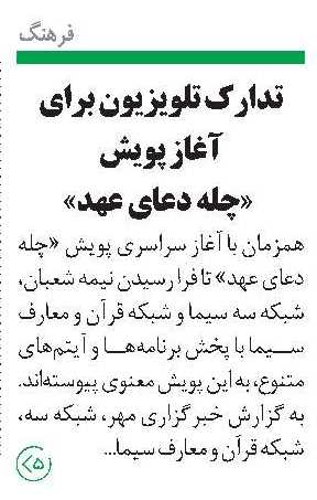 • تدارک تلویزیون برای آغاز پویش «چله دعای عهد»