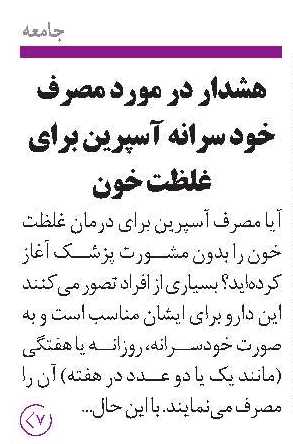 • هشدار در مورد مصرف خود سرانه آسپرین برای غلظت خون