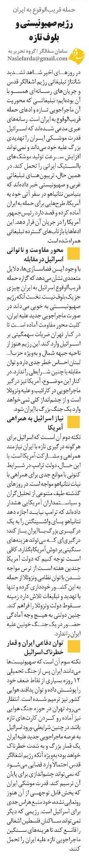• رژیم صهیونیستی و بلوف تازه