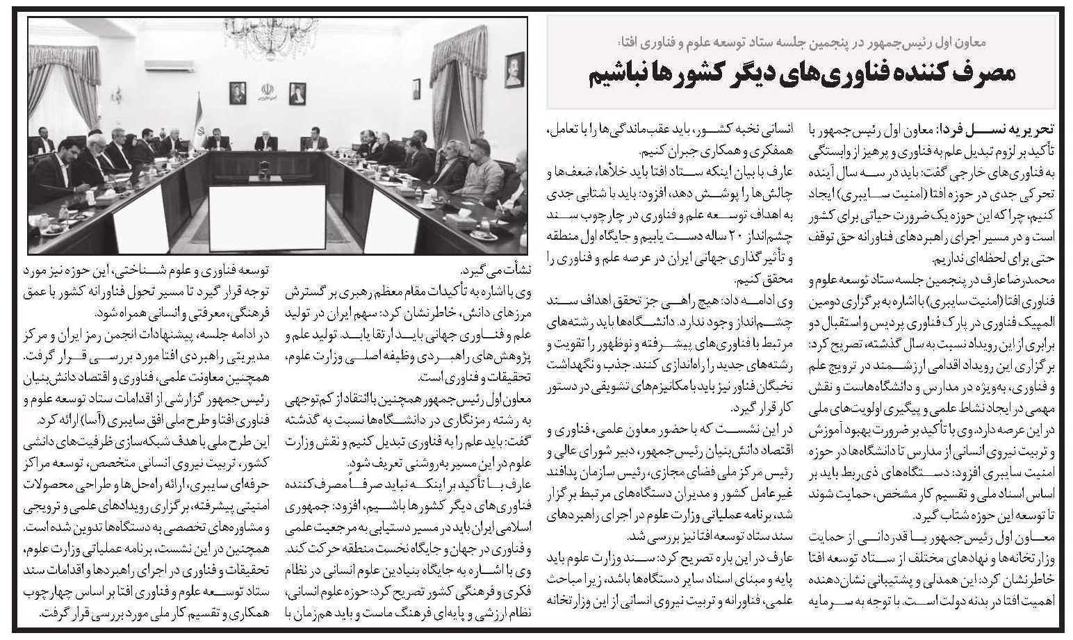 عارف با تأکید بر اینکه نباید صرفاً مصرفکننده فناوریهای دیگر کشورها باشیم، افزود: جمهوری اسلامی ایران باید در مسیر دستیابی به مرجعیت علمی و فناوری در جهان و جایگاه نخست منطقه حرکت کند.